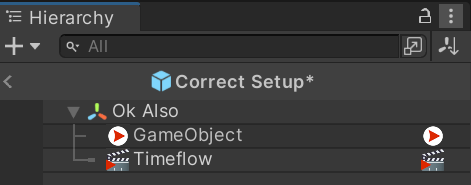<figure><img src="https://2067910529-files.gitbook.io/~/files/v0/b/gitbook-x-prod.appspot.com/o/spaces%2FC3dOuetlQfYgK5FPUKgn%2Fuploads%2FI2kWdgzPwRvIfkTl2Ibv%2Fimage.png?alt=media&#x26;token=ba35fbd8-26e7-4095-9c2d-3b8c42cefc5e" alt=""><figcaption><p>An incorrect setup where Timeflow is a child of a TimeflowObject</p></figcaption></figure>